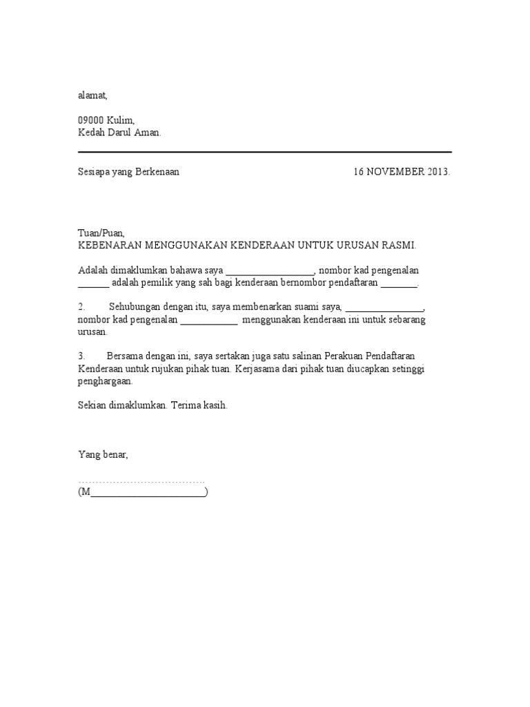 Maka 3 suyitno pertanyaan ini perlu direnungkan. Contoh surat rasmi kebenaran membawa kenderaan surat kebenaran menggunakan premis.